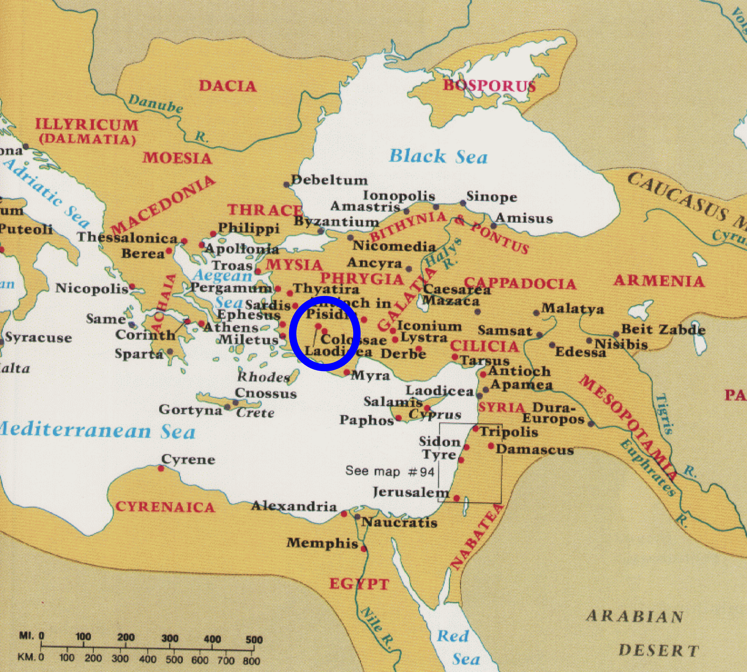 Geography - 110 miles east of Ephesus, 10 miles east of Laodicea, located on the Lycus River.